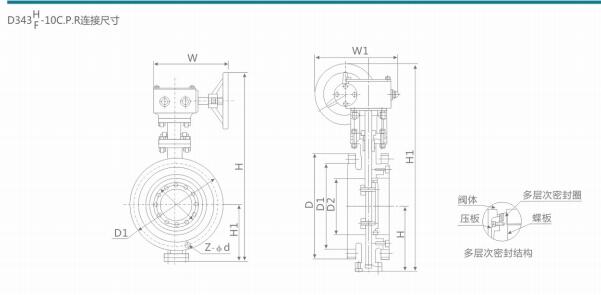 D343H蝸輪傳動法蘭式金屬硬密封蝶閥